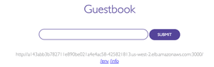 割り当てられたら、アクセスが可能です。 http://a143abb3b782711e890be021a4e4ac58-425821813.us-west-2.elb.amazonaws.com:3000/ を開いてみると、無事ゲストブックアプリケーションが開かれました。