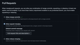 こうした経緯があり、コミットログの運用をチームで共有しようとも考えましたが、年末に会った知人から Squash and merge 運用がうまくいっているという話を聞き、真似してみることにしました。