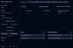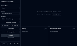 先ほどは stdio の簡単なチェックで echo を使いましたが、今回はもう少し複雑になるので @modelcontextprotocol/inspector を使いたいと思います。