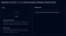 その業務では所定の Organization に新しいメンバーを追加する必要があるのですが、調べてみると執筆時点(2025年10月)では Organization への Invitation を送る機能には対応していませんでした。Organization 関連のツールは search_orgs だけの様です。
