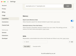 My Settings page looks like this. As you see, “Your skills” is empty: